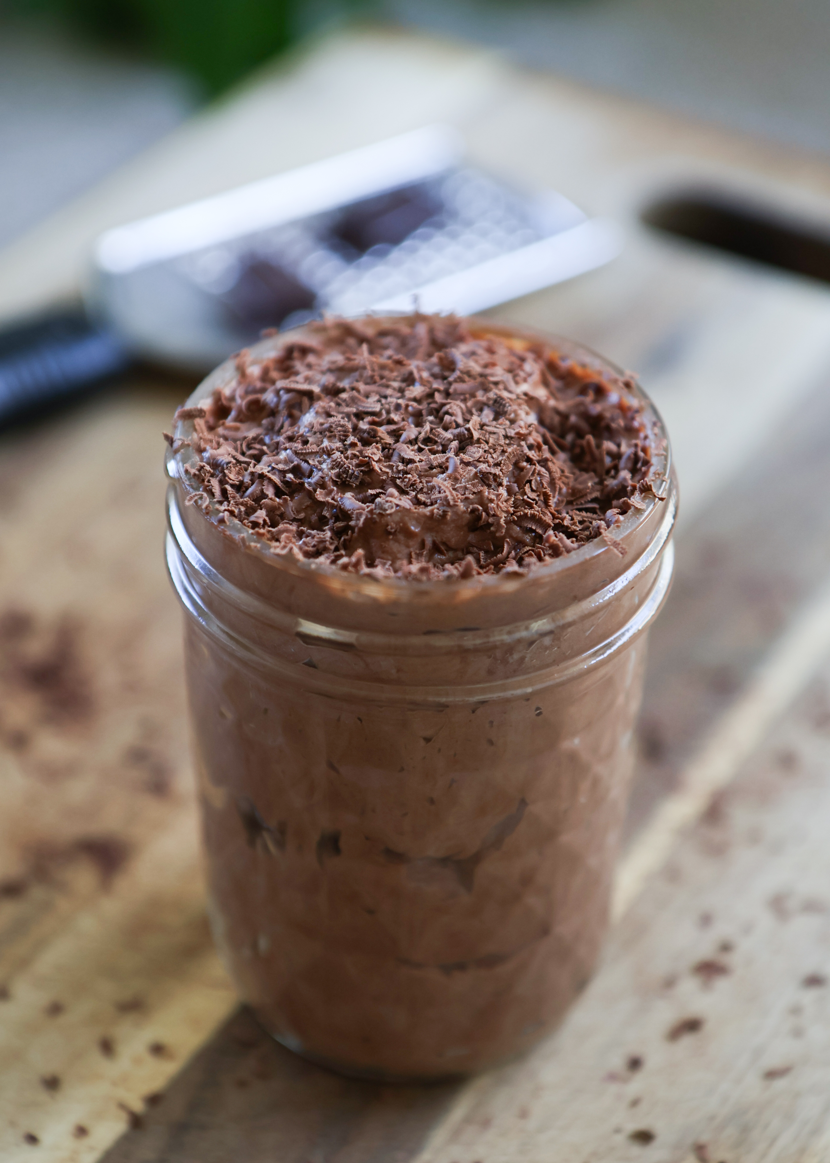 - Separate evenly among mason jars. Top with grated chocolate. Let set in refrigerator for several hours or overnight. Keeps for 3 days.